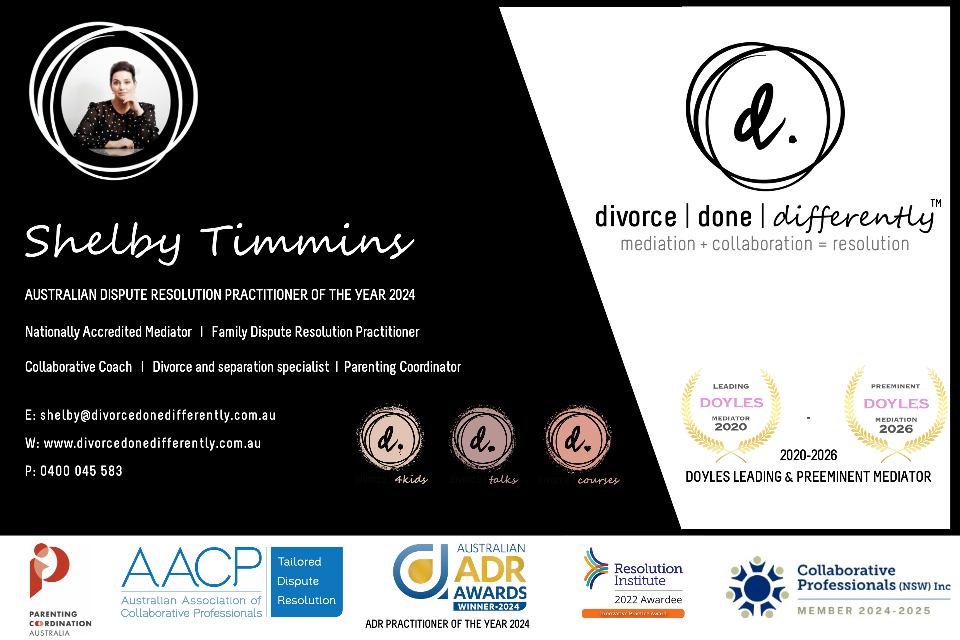 I hold a Masters of Law from the University of Sydney, I am a Nationally Accredited Mediator, Family Dispute Resolution Practitioner, Divorce and Conflict Coach, Parenting Coordinator and Collaborative Professional.